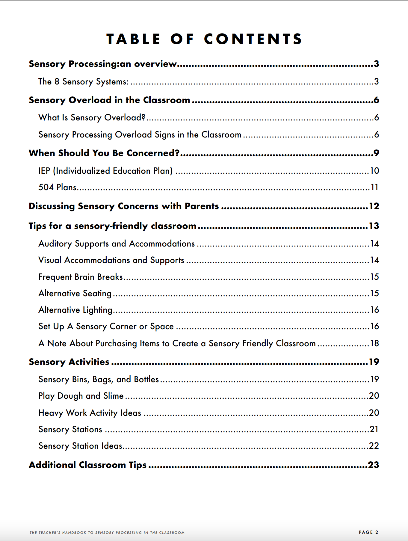 The Teacher’s Handbook to Sensory Processing in the Classroom – (Valued at $12.00)